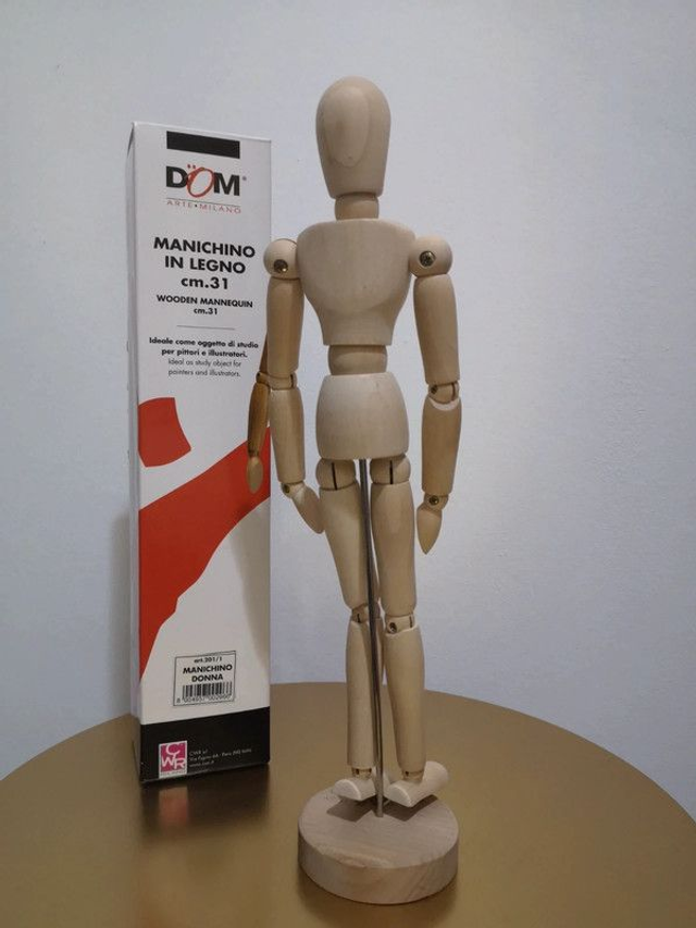 Manichino in legno snodabile utilizzato come modello per il disegno