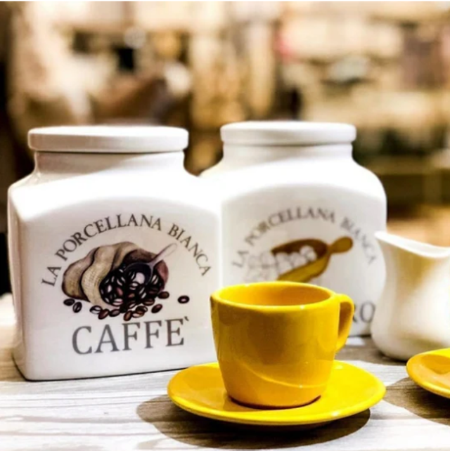 PORCELLANA BIANCA - Barattolo Porcellana Deco Caffè 1,1 Lt